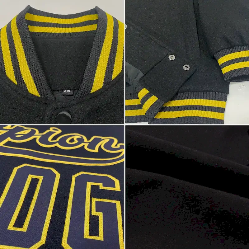 Custom Black Old Gold Bomber Full-Snap Varsity Letterman Jacket