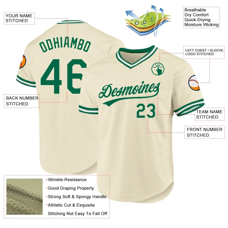 Each ® tailored baseball jersey is meticulously personalized with the following features:Material: 100% PolyesterJersey with Stitched name & numberMoisture-wicking fabric has spongy handle, good draping property and elasticity as well as good dimensional stability and wrinkle-resistanceBreathable & Quick-DryingAthletic Cut & Exquisite stitching not easy to fall offRounded droptail hemTagless Collar offers clean comfortV-Neck with Rib-Knit trim aroundShort SleeveMachine wash, Do Not Tumble DryNon-alcoholic Available For Wiping or WashingImported