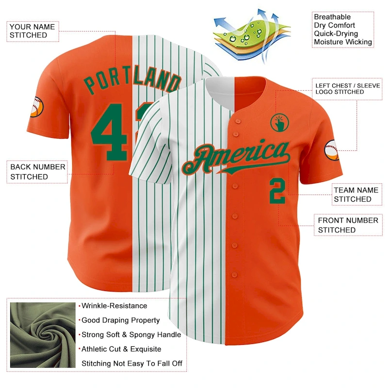 Custom Orange White-Kelly Green Pinstripe Authentic Split Fashion Baseball Jersey