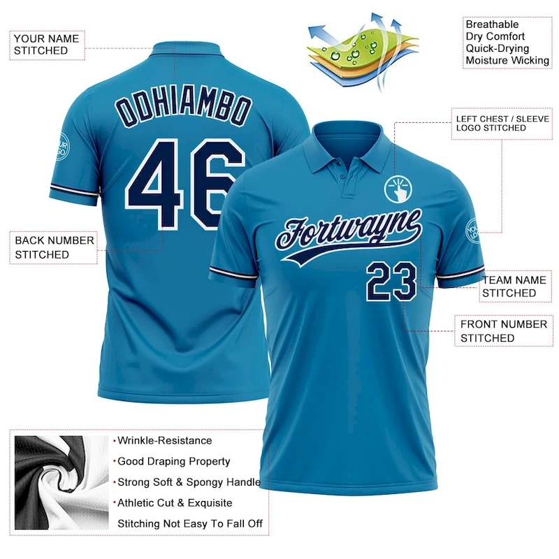Each ® tailored golf polo shirt is meticulously personalized with the following features: Material: 100% polyester2 Button placketGolf polo shirt with stitched tackle twill name & numberMoisture-wicking fabric has spongy handle, good draping property and elasticity as well as good dimensional stability and wrinkle-resistanceTreathable & quick-dryingAthletic cut & exquisite stitching not easy to fall offTagless collar offers clean comfortMachine wash, do not tumble dryNon-alcoholic available for wiping or washingImported