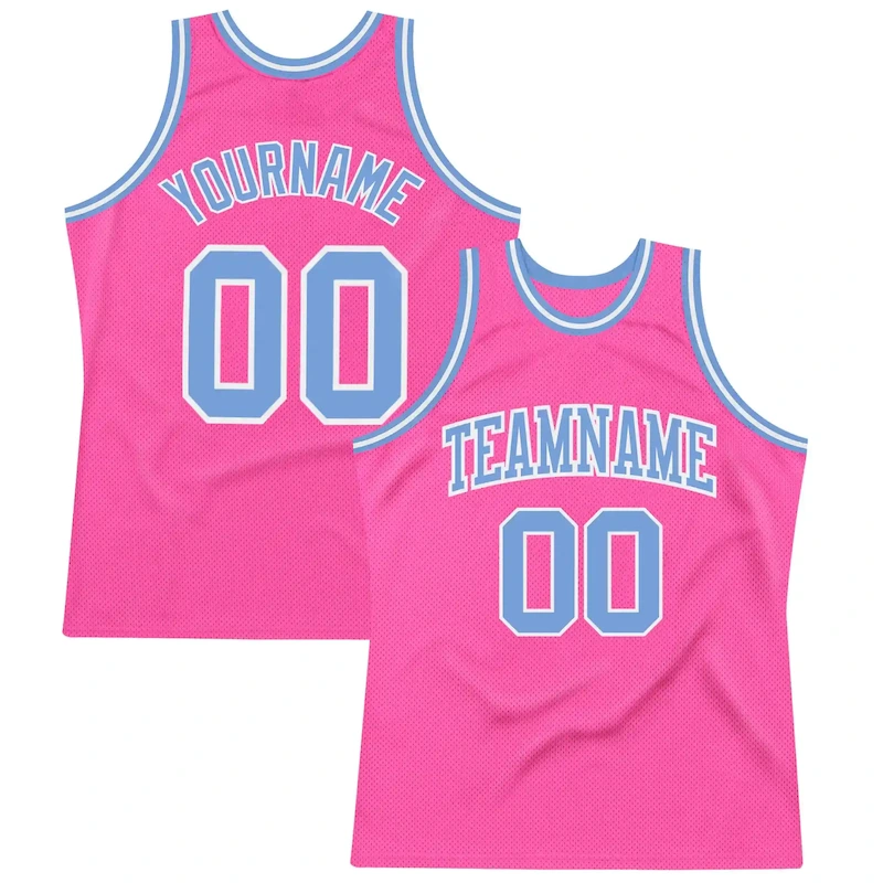 Custom Pink Light Blue-White Authentic Throwback Basketball Jersey